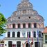 Das Rathaus zeigt Renaissancedesign mit verzierten Giebeln, dekorierten Steinmauern und einem Uhrenturm, der sich über dem zentralen Bezirk erhebt.
