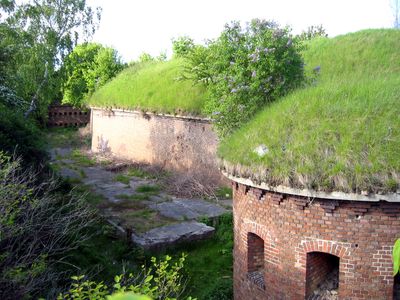Fort Jazuicki verfügt über eine kreisförmige Batterie mit Bastionen und Kasematten für Artillerieeinrichtungen entlang des Verteidigungsumfangs von Danzig.