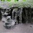 Die Höhlenwände zeigen kleine Stalaktiten und Sinterbildungen mit rötlichen Färbungen durch eisenhaltige Verbindungen im Wasser.