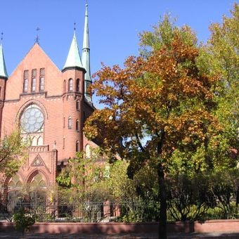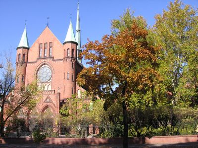 Die Kirche befindet sich im Viertel der Vier Konfessionen, wo katholische, orthodoxe, jüdische und protestantische Gotteshäuser nebeneinander existieren.