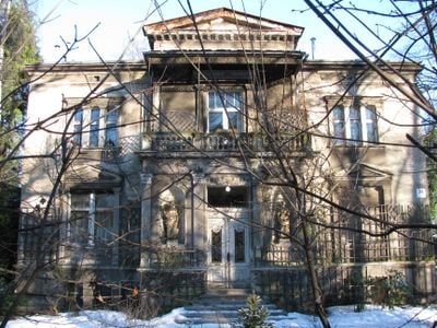 Die Villa in der Obrońców Westerplatte 24 zeigt Terrakotta-Skulpturen griechischer Musen, Pilaster, die einen Balkon stützen, und eine Orangerie.