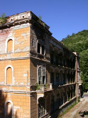 Das Hotelgebäude in der Cerna Straße 20 verfügt über ein Untergeschoss und drei Obergeschosse in Băile Herculane.