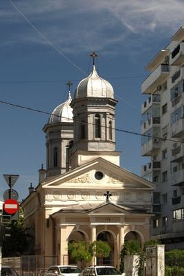 Die Weiße Kirche steht in der Calea Victoriei 110 mit einem einzelnen Kirchenschiff, zwei achteckigen Kuppeln und einer halbrunden Apsis von 30.3 Metern.