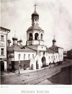 Der Klosterkomplex umfasst die Kathedrale der Begegnung der Wladimir-Ikone, umgeben von Gärten und Klostergebäuden in der Bolschaja Lubjanka-Straße.