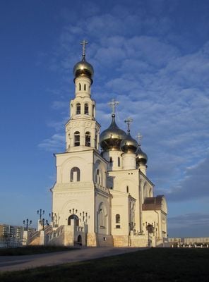 Die orthodoxe Kathedrale der Verklarung Christi ist ein aufsteigendes Ziegelgebäude in Abakan mit klassischen orthodoxen Merkmalen und einer Höhe von etwa 49 Metern. Das Bauwerk verbindet traditionelle Architekturelemente mit solider Konstruktion.
