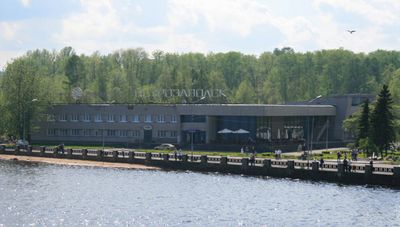 Das Petrozavodsk-Wasserterminal ist ein Gebäude am Onegasee, das Funktionen eines Passagier- und Frachtzentrums erfüllt. Die Struktur zeigt modernistische sowjetische Architektur mit Beton, Glas und mehreren Geschossen entlang der Uferlinie.