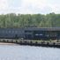 Die Wasserstation Petrozavodsk steht am Onegasee und zeigt modernistische sowjetische Architektur mit Beton- und Glaselementen über mehrere Ebenen.