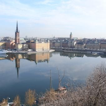 Stockholm ist die Hauptstadt Schwedens und erstreckt sich über vierzehn Inseln, wo ein großer See auf das Meer trifft, verbunden durch Brücken, die ein Netz aus Wasser und Land bilden. Man sieht Gebäude in Pastellfarben entlang des Ufers und schmale Gassen in der Altstadt, die sich zwischen Kirchen und Plätzen winden.