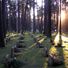 Der Waldfriedhof erstreckt sich über ein weitläufiges Waldgebiet, das Kiefern, Granitstrukturen und sorgfältig gestaltete Wege auf dem gesamten Gelände integriert.