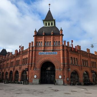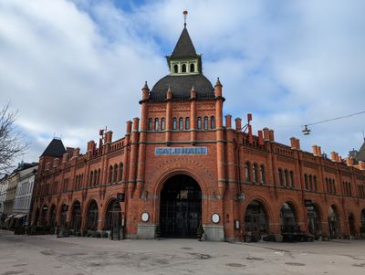 Das Backsteingebäude weist einen sternförmigen Grundriss mit 18 Händlern auf, die frische Produkte, Fleisch, Fisch und schwedische Spezialitäten anbieten.