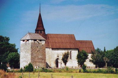 Die Kirchenstruktur stammt aus dem 14. Jahrhundert und integriert einen älteren Wehrturm aus dem 12. Jahrhundert zum Schutz vor baltischen Angreifern.