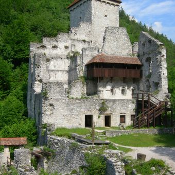 Burg Stain, Mittelalterliche Burgruine in Begunje na Gorenjskem, Slowenien.