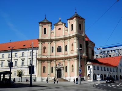 Die Dreifaltigkeitskirche zeigt eine zentrale Kuppel mit Trompe-l'œil-Fresken des italienischen Malers Antonio Galli Bibiena am Župné námestie Platz.