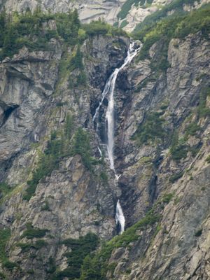 Ťažký vodopád ist ein Wasserfall in der Hohen Tatra, der sich in mehreren Kaskaden bergab stürzt und aus Schneefelder und Bergquellen gespeist wird. Das Wasser fließt durch enge Felsspalten und bildet am Fuße des Falls einen kleinen See, bevor es weitergeht ins Tal.