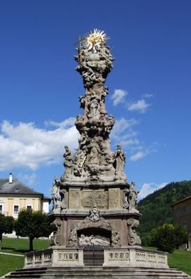Die Säule zeigt religiöse Motive in barocker Formensprache und spiegelt den Glauben wider, der die Stadt im 18. Jahrhundert prägte. Besucher können die handwerkliche Qualität der Statuen hautnah erleben und verstehen, wie solche Denkmäler die Frömmigkeit einer Gemeinde ausdrückten.