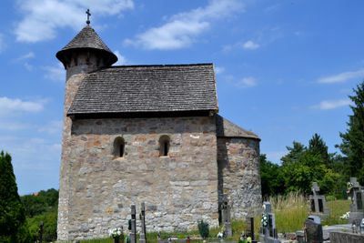 Die Sankt-Michael-Kirche verfügt über einen Glockenturm, detaillierte Innenfresken mit biblischen Szenen und einen Holzaltar zwischen ihren Mauern.