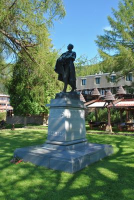 Hotel, pomník so sochou, monument in Donovaly, Slovakia