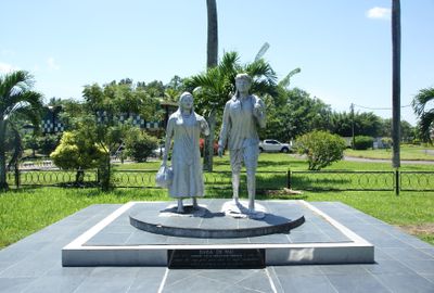 Das Denkmal zeigt zwei Figuren in traditioneller Kleidung und erzählt von der Geschichte der indischen Gemeinde vor Ort. Besucher sehen hier, wie wichtig Familie und Zusammenhalt in dieser Kultur sind.