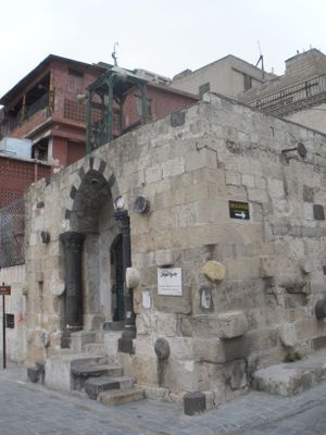 Die Al-Qaiqan-Moschee steht im westlichen Teil der Altstadt von Aleppo, nahe dem Eingang zum Al-Madina Souq Markt.