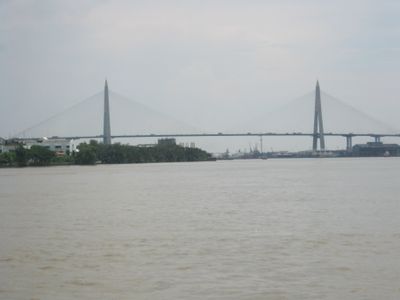 Die Kanchanaphisek-Brücke, eröffnet im November 2007, stellt die erste Brücke dar, die den Bezirk Phra Pradaeng über den Chao-Phraya-Fluss verbindet.