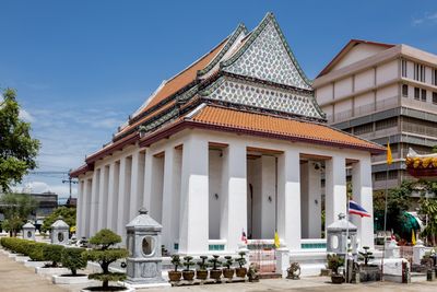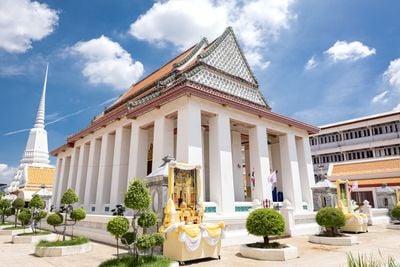 Der Ubosot des Tempels beherbergt das Hauptbuddha-Bildnis Phra Phuttha Maha Chakkraphat, das Buddha in königlicher Kleidung in unterwerfender Haltung darstellt.