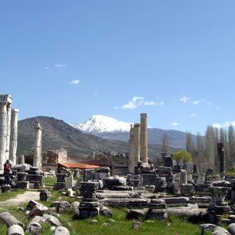 Aphrodisias ist eine antike Stadt in der Türkei mit gut erhaltenen Ruinen aus römischer Zeit. Das Gelände umfasst ein Theater, ein großes Stadion, einen Tempel und Werkstätten, die über das weite Areal verteilt sind.