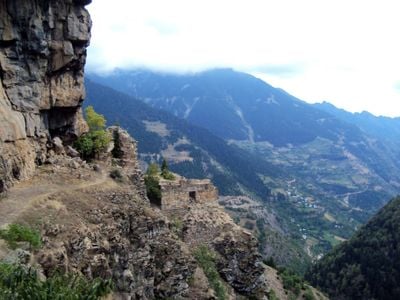 Die Steinstrukturen des Klosters und der Burg Parekhi stehen auf 781 Metern Höhe und zeigen mittelalterliche Architekturelemente aus der georgischen Periode.