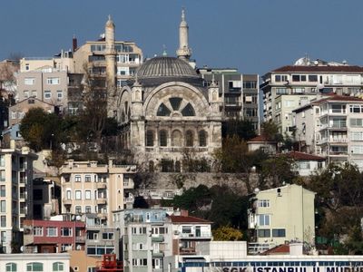 Die Şehzade Cihangir Moschee ist eine Moschee in Istanbul mit einer großen zentralen Kuppel, die von kleineren Kuppeln umgeben ist, und Marmorsäulen, die ihre symmetrische Struktur auf einem Hügel stützen. Das Bauwerk kombiniert religiöse und gedenkende Funktionen in einem einzigen Komplex.
