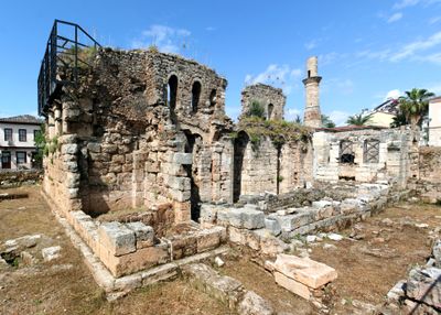 Die Struktur durchlief mehrere religiöse Umwandlungen als Kirche und Moschee und spiegelt das religiöse Erbe Antalyas über Jahrhunderte wider.