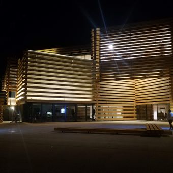 Der japanische Architekt Kengo Kuma entwarf die 3582 Quadratmeter große Struktur unter Verwendung von Holzblöcken, die an die traditionellen Häuser des Viertels erinnern.