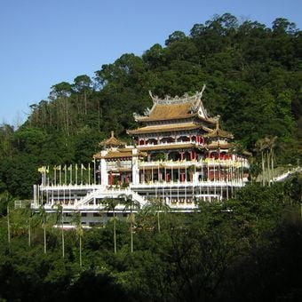Der Chi Nan Tempel ist ein taoistischer Tempel in Wenshan District, der sich über mehrere Ebenen an den Hängen des Houshan-Berges erstreckt. Das Bauwerk zeigt traditionelle südchinesische Architektur mit feinen Steinschnitzereien, roten Säulen und Dächern mit aufgeschwungenen Rändern.