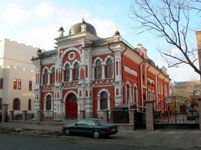 Podil-Synagoge, Neo-Mudéjar Synagoge im Podil-Viertel, Kiew, Ukraine.