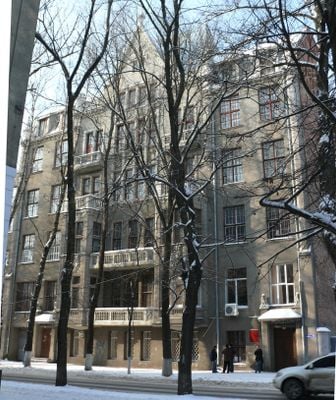 Der Architekt Wolodymyr Pokrowskij entwarf das Gebäude 1914 als eines der ersten modernen Bauwerke in Charkow. Das Projekt führte innovative Betontechniken in die frühe Architekturlandschaft der Stadt ein und setzte neue Standards für Konstruktionsmethoden.