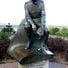 Die Skulptur stellt Kapitän Titarenko aus dem Film 'Nur alte Männer ziehen in die Schlacht' dar, verbindet Militärgeschichte mit Film.