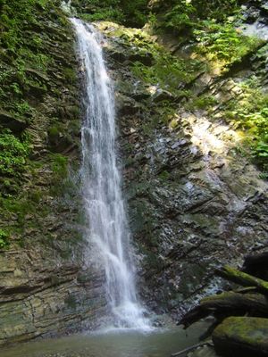 Der Sych-Wasserfall, der zwanzig Meter hoch ist, erzeugt ein charakteristisches Geräusch, wenn das Wasser seine vertikale Fläche hinabfließt.