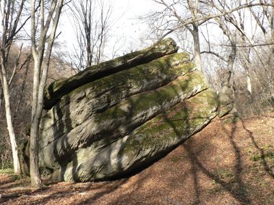 Die Haydamatsky-Schlucht erstreckt sich über 96 Hektar Land und weist natürliche Felsformationen und freigelegte Schichten der geologischen Mohyliv-Struktur auf.