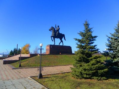 Statue of Kliment Voroshilov in Luhansk, Bronzenes Reiterstandbild in Luhansk, Ukraine.