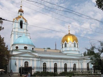 Die Kathedrale der Geburt der Jungfrau Maria ist ein klassizistisches Kirchengebaeude in der Innenstadt von Mykolaiv mit symmetrischen Proportionen und aufgeraeumt gestalteten Linien. Das backsteinernte Bauwerk zeigt typische Merkmale dieser architektonischen Periode mit seiner ausgewogenen Fassade.