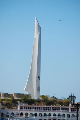 Der Obelisk der Heldenstadt erhebt sich 60.2 Meter in den Himmel und zeigt ein Design aus Bajonett und Segel, das von verschiedenen Teilen Sewastopols sichtbar ist.