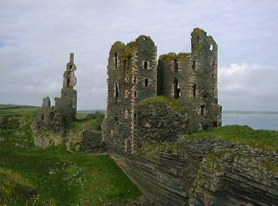 Die Steinbefestigung steht auf einer felsigen Halbinsel in der Sinclair Bucht, mit Mauern die fünfzehn Meter über der Nordsee aufragen.