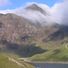 Snowdon ist ein Gipfel aus vulkanischem Gestein in Gwynedd, Wales, der sich auf 1085 Meter erhebt. Fünf miteinander verbundene Spitzen bilden scharfe Grate, zwischen denen sich glaziale Becken öffnen.