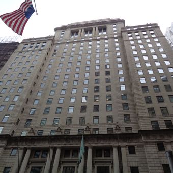 Das Cunard Building ist ein 23-stöckiges Bürogebäude mit einer Kalksteinfassade und Schifffahrtsmotiven in der Financial District. Das Gebäude an der 25 Broadway hat eine markante Fassade mit horizontalen Gliederungen und beherbergt verschiedene Unternehmen.