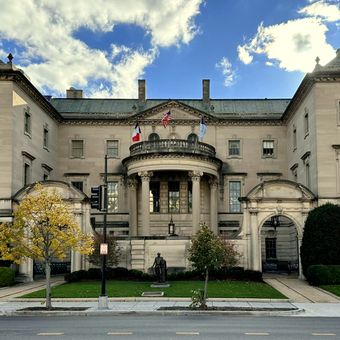 Die Larz Anderson House ist ein Herrenhaus im Stil der Beaux-Arts im Viertel Dupont Circle in Washington, D.C. Das Gebäude zeigt auf der Nordseite einen Eingang mit Innenhof, während die Südseite Elemente englischer Architektur des 18. Jahrhunderts aufweist.