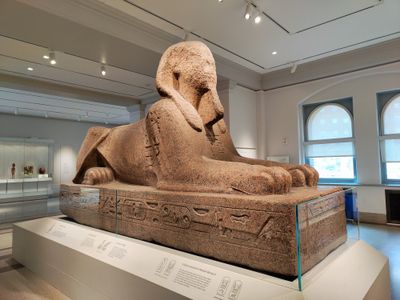 In einem Raum steht eine ägyptische Statue, die über 11 Tonnen (mehr als 11.000 Kilogramm) wiegt und erst vor wenigen Jahren an ihren heutigen Platz versetzt wurde. Ihr neuer Standort verwandelte den Eingangsbereich in eine Art überdimensionalen Empfang mit pharaonischer Präsenz.