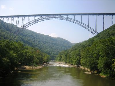 Die New River Gorge Bridge erstreckt sich 924 Meter über eine tiefe Schlucht und erhebt sich 267 Meter über dem Wasser mit einem Stahlbogen von 518 Metern.