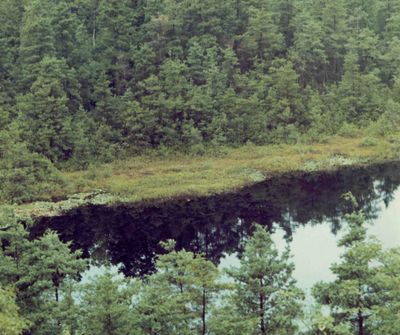 Ell Pond ist ein geschuetztes Naturgebiet in Hopkinton, Rhode Island, das aus einem Kesselloch-See besteht, der von Rotahornbaeumen und Atlantischen Weisskiefern umgeben ist. Die etwa 20 Hektar grosse Flaeche zeigt ein komplexes Sumpfoekosystem mit verschiedenen Vegetationszonen, die sich vom Wasser bis zu trockeneren Bereichen erstrecken.