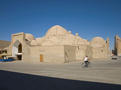 Der Basar repräsentiert die traditionelle islamische Architektur Zentralasiens, verbindet Handelsfunktionen mit Versammlungsräumen für lokale Händler.