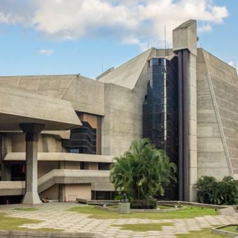 Der Teresa Carreño Kulturkomplex erstreckt sich über 80,000 Quadratmeter mit Betonflächen und kantigen Formen nach brutalistischen Architekturprinzipien.