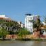 Cần Thơ erstreckt sich entlang des südlichen Ufers des Hậu-Flusses, mit einem Netz von Wasserwegen, die sich mit städtischen Vierteln und Landwirtschaftszonen kreuzen.