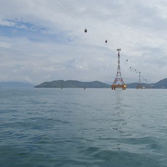 Die Vinpearl Seilbahn verbindet das Festland mit der Hon Tre Insel über eine 3.320 Meter lange Strecke mit sieben Offshore-Türmen.
